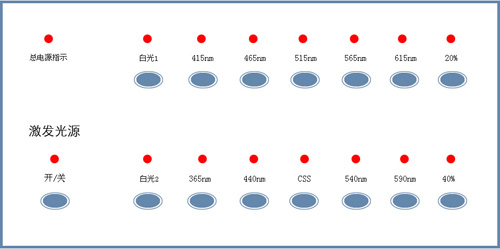 激發多波段光源(15種):254 nm; 365 nm; 415 nm; 440 nm; 465 nm; 515 nm; 540 nm; 565 nm; 590 nm; 615 nm; CSS; 20%白光; 40%白光; 白光; 紅外光。